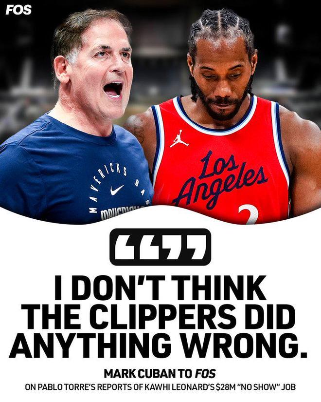 雷速体育10月13日讯 近日独行侠股东库班接受了《Front Office Sports》采访,期间再次谈到了快船球员伦纳德涉嫌阴阳合同的事件。库班的立场依旧非常明确,他直截了当的表示:“